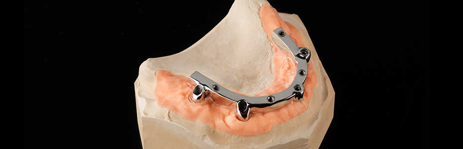 Unsere individuellen CAD/CAM Implantatstege werden aus hochwertigem CoCr (NEM) oder Titan gefräst. Die Stegprothesen sind absolut spannungsfrei und bieten bei totalem Zahnverlust eine komfortable und zugleich preiswerte Versorgungsvariante.